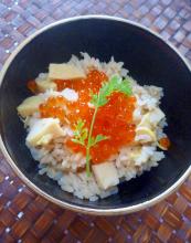 仕上げにイクラを乗せた、豪華版、竹の子の炊き込みご飯です。いくらと竹の子の相性がピッタリ!ゴロゴロにカットした、竹の子が美味しいです。春だな〜 (*´∀`*)材料費: 1,000円前後楽天レシピ レシピリンク: http://recipe.rakuten.co.jp/recipe/1070039902/2016-06-01