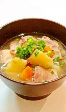 お出汁の効いた野菜たっぷりの豚汁にほっこり甘いサツマイモを加えました☆優しい味にほっと一息です♪材料費: 500円前後楽天レシピ レシピリンク: http://recipe.rakuten.co.jp/recipe/1110008360/2013-10-04